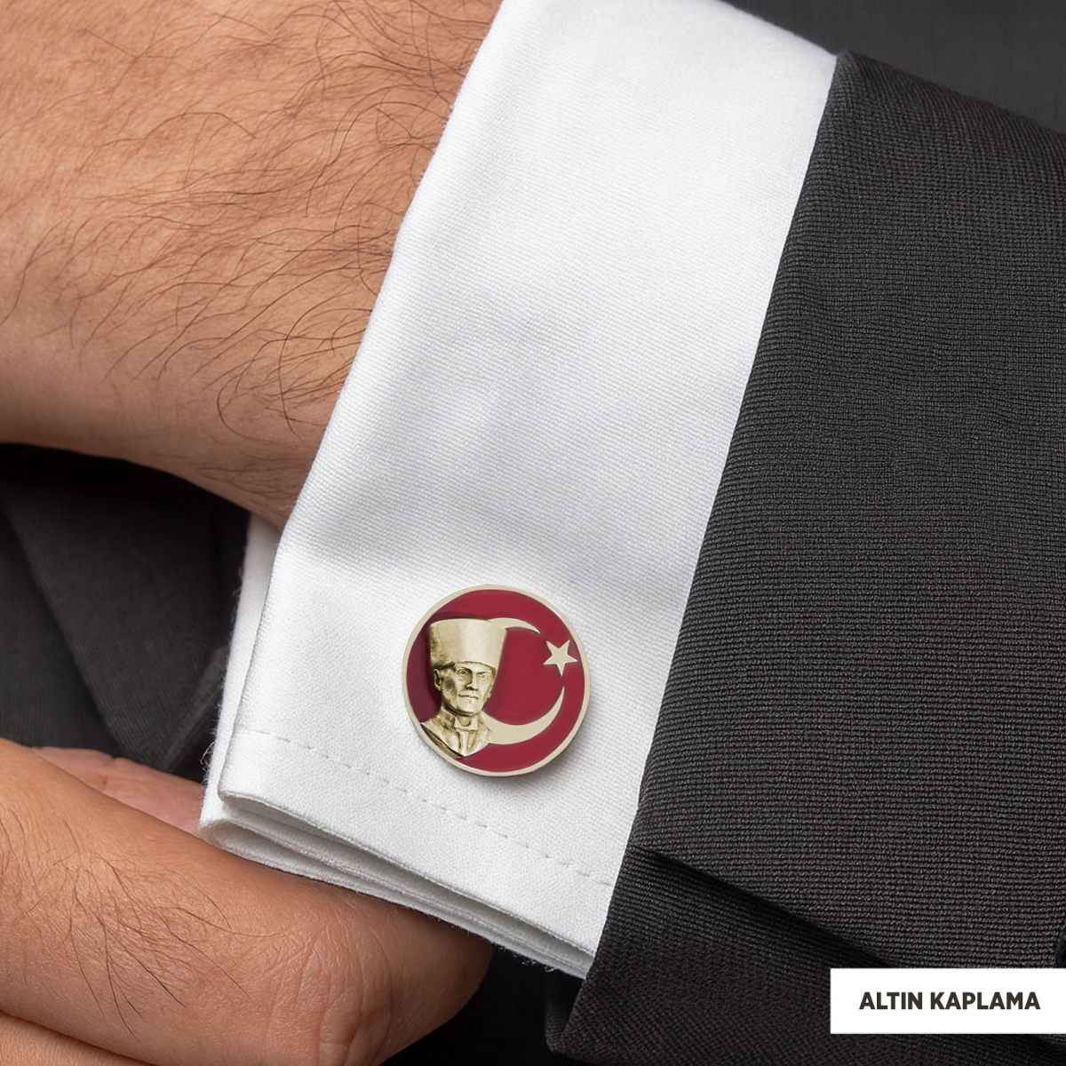 925 Ayar Gümüş Atatürk Kol Düğmesi, Atatürk Kol Düğmesi, Özel Tasarım ve Usta El İşçiliği Atatürk Kol Düğmesi