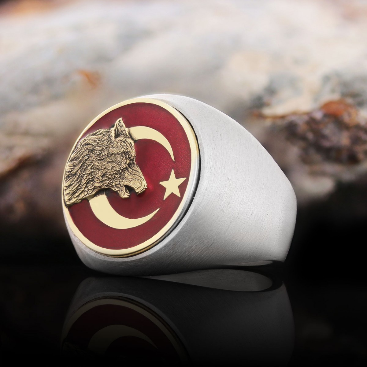 • Yüzüğün üst kısmına Ay Yıldız ve Bozkurt işlenmiştir.