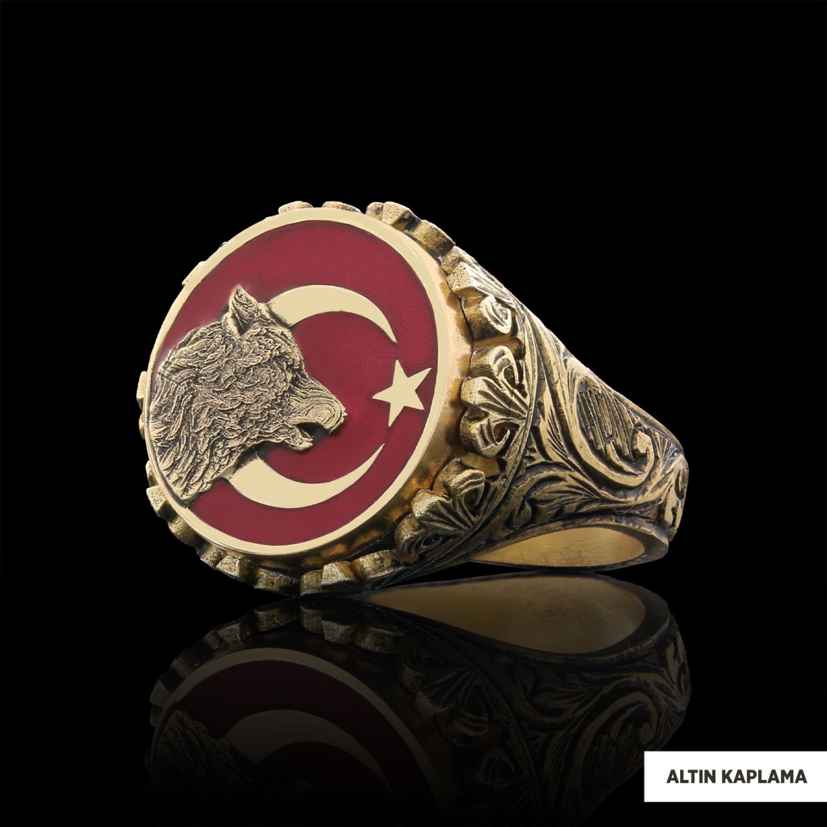 • Yüzüğün üst kısmına Ay Yıldız ve Bozkurt işlenmiştir.